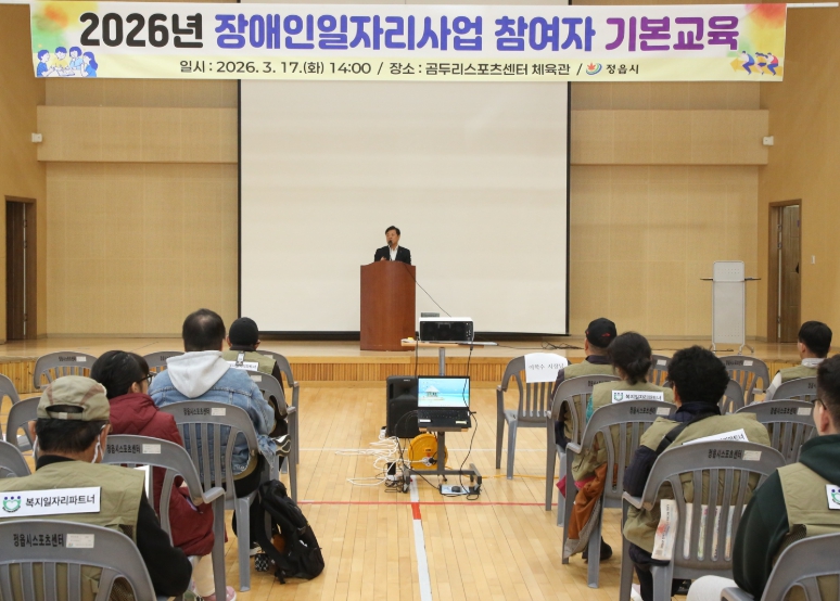 정읍시장애인종합복지관은 지난 17일 곰두리스포츠센터 체육관에서 일자리 사업 참여자 141명을 대상으로 ‘2026년 장애인일자리사업 참여자 기본 교육’을 진행했다.