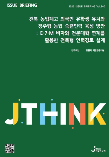 ![]() (표지) 이슈브리핑 340호 전북 농업계고 외국인 유학생 유치와 정주형 농업 숙련인력 육성 방안 |
