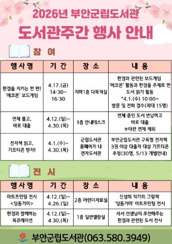 ![]() 부안군립도서관, 도서관주간 독서 문화 행사 운영 |