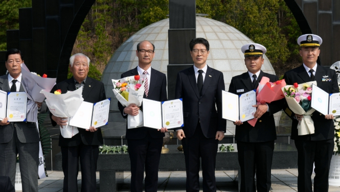 이날 기념식에선 안보의식 향상에 기여한 유공자로 해군 제3함대 장병 3명과 대한민국상이군경회 회원 2명에게 표창이 수여됐다.