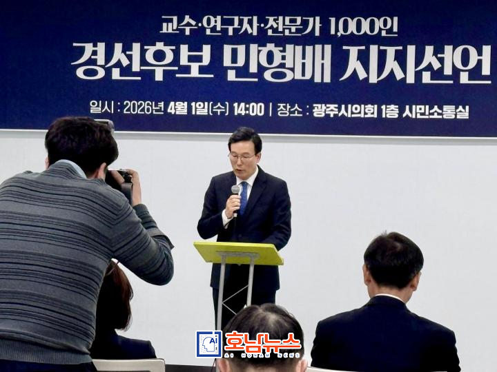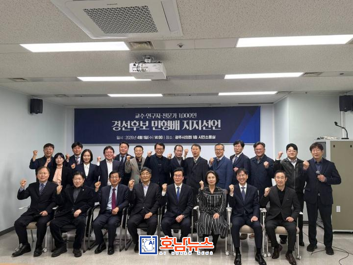 A total of 1,000 professors, researchers, and specialists from across Jeonnam and Gwangju held a declaration ceremony at the Gwangju Metropolitan Council on April 1, officially endorsing Min Hyung-bae, a National Assembly member (Gwangsan-eul, Gwangju) and candidate in the Democratic Party primary for mayor of the integrated special city.