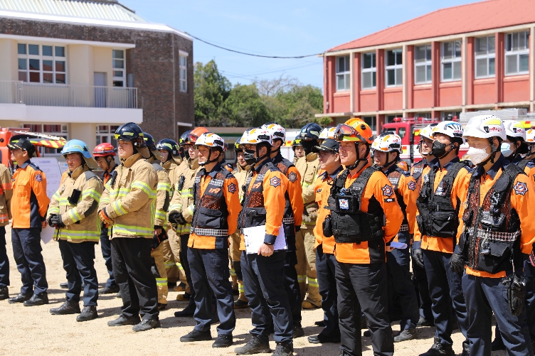 이날 훈련은 건물 철거 중 화약류 폭발로 인한 대형 화재와 다수 사상자 발생 상황을 가정해 진행됐으며,