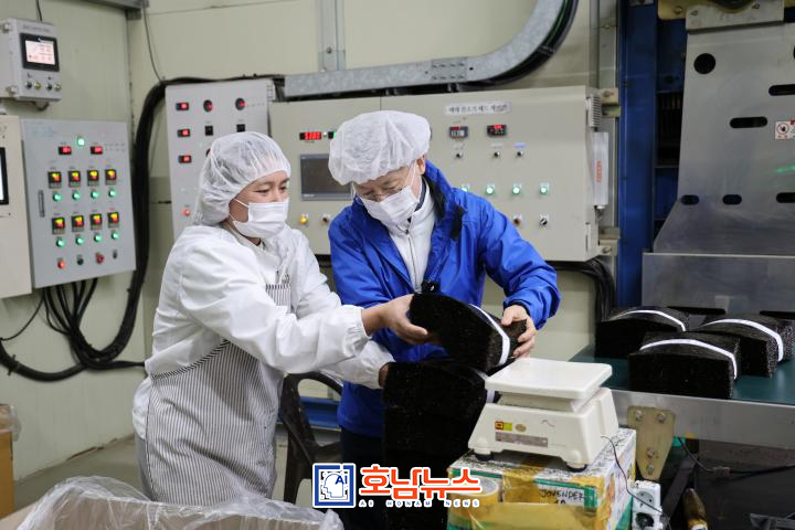 ![]() 민형배 전남광주특별시장 예비후보 완도 김공장 방문 / 사진제공=민형배 선대위 |