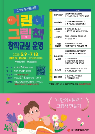 창작교실은 5월 9일부터 7월 18일까지 매주 토요일 무등도서관에서 진행된다. 참가 신청은 4월15일부터 시립도서관 누리집에서 선착순 접수하며, 자세한 사항은 무등도서관으로 문의하면 된다.