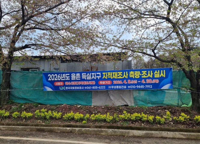 ![]() 2026년도 ‘율촌 득실지구’ 지적재조사사업 안내 플랜카드 |