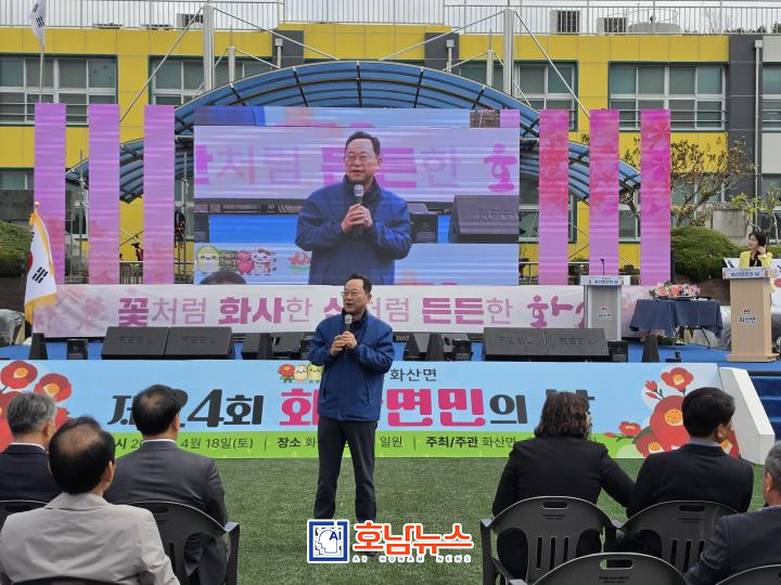 In the morning, he began his schedule by greeting participants at the departure of a local agricultural cooperative hiking group in Haenam-eup, marking his first interaction with residents. He then attended the “Hwasan Township Residents’ Day” event held at Hwasan Elementary School, highlighting the importance of community unity and cohesion.