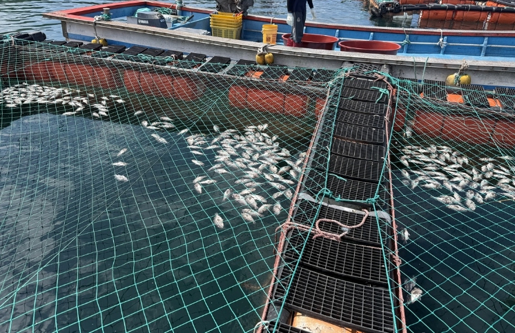 ![]() 2025년 여름철 고수온 발생에 따른 흑산면 조피볼락 양식장 폐사 발생 사진 |