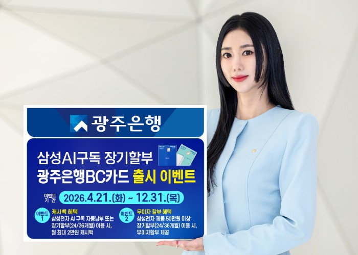 ![]() 광주은행, 삼성전자 AI 구독클럽 고객 맞춤형 카드! ‘삼성 AI구독 장기할부 광주은행BC카드’ 출시 |
