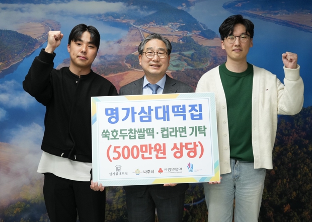 나주시는 전날 명가삼대떡집으로부터 쑥호두찹쌀떡 160박스와 컵라면 120박스를 기탁받았다고 22일 밝혔다.