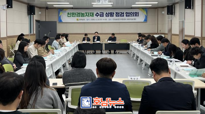 The province announced that it held a “Consultative Meeting on the Supply Status of Eco-friendly Agricultural Materials” on the 22nd at the Jeonnam Agricultural Support Center, attended by around 60 officials from the provincial government, cities and counties, the Jeonnam headquarters of NongHyup Agribusiness Group, and local branches.