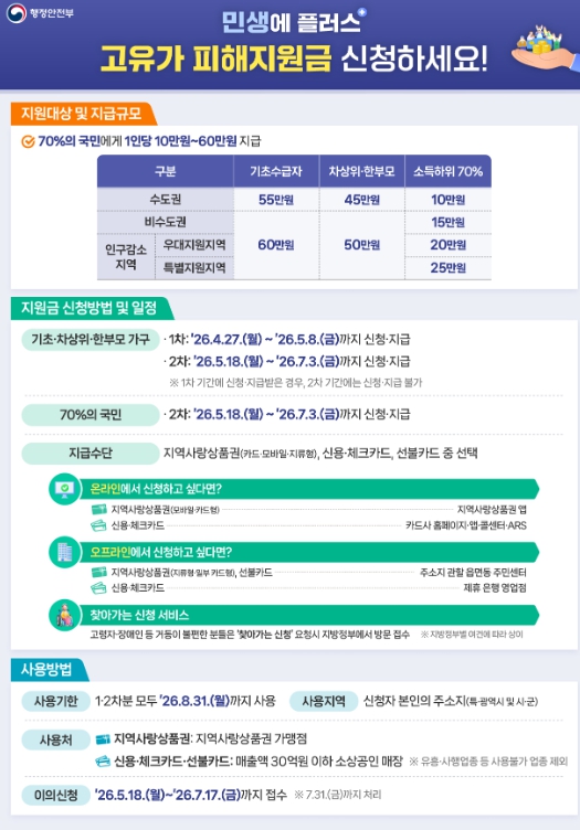 신청 및 지급은 1차(4월 27일~5월 8일)와 2차(5월 18일~7월 3일)로 나눠 진행된다.