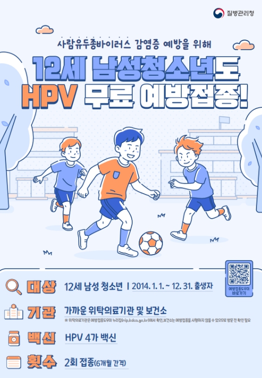 ![]() HPV 국가예방접종 12세 남성청소년 확대 시행 |