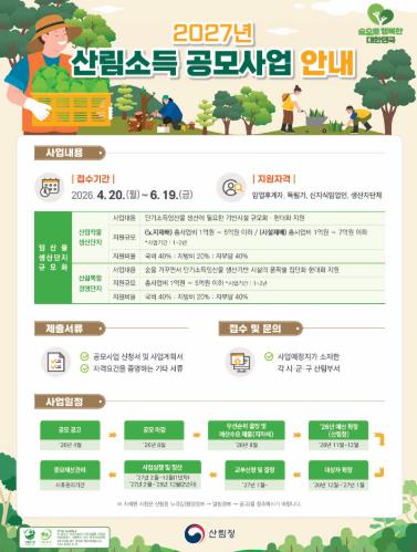 ![]() 고흥군, 2027년 산림소득사업 공모 신청 접수 |