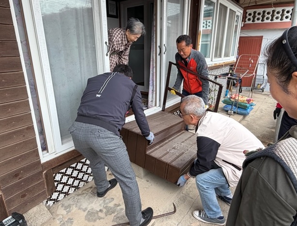 이날 현장에는 지사협 위원 등 16명이 참여해 구슬땀을 흘렸다. 위원들은 고장 난 부엌문 손잡이를 교체하고, 낙상 위험이 있던 주택 입구에 튼튼한 계단을 새로 설치해 어르신의 보행 안전을 확보했다.