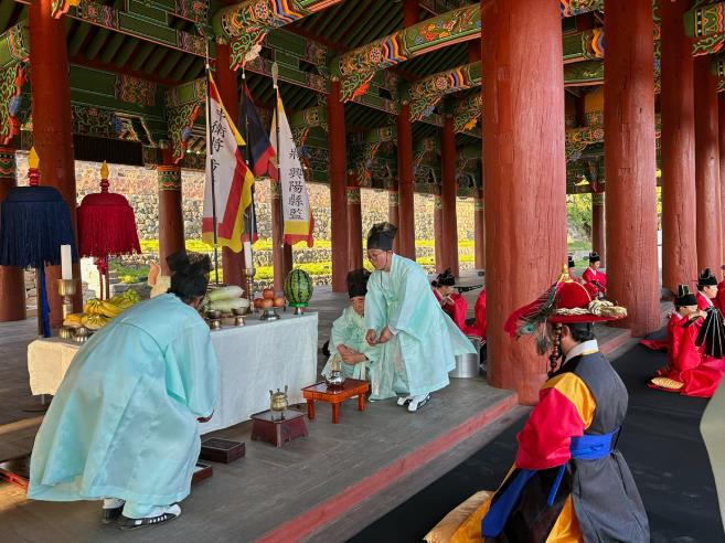 ![]() 진남관에서 「전라좌수영 둑제」로 제례를 진행하고 있다. |