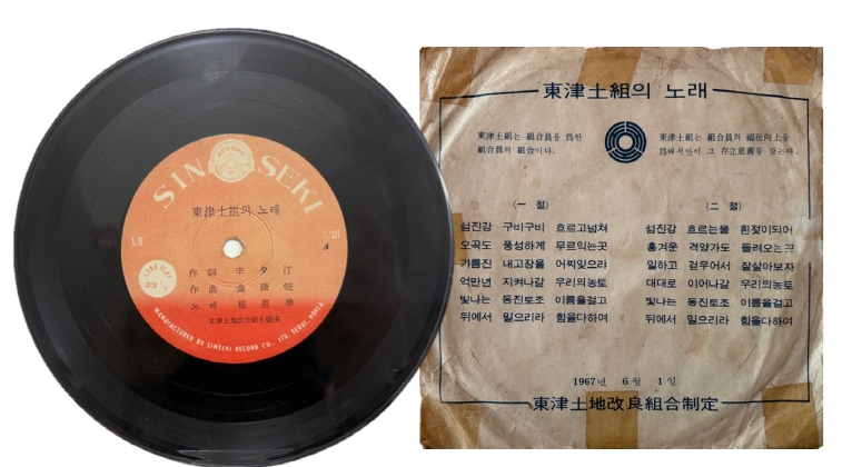 이번 전시는 지난 1968년 제작된 '동진토조의 노래'음반을 중심으로, 농업 기반 지역 공동체의 문화와 정서를 조명한다. 해당 음반은 1925년 창립된 동진토지개량조합의 창립 42주년을 기념해 제작된 것으로, 작사자 ‘신석정(辛夕汀)’으로 표기되어 있으며 조합원의 결속과 지역 정체성을 담아낸 기록물이다.