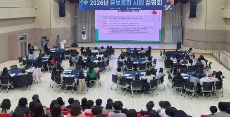 [AI 호남뉴스]광주시교육청은 3일 광주AI교육원 대강당에서 유치원 및 어린이집 원장 250여 명을 대상으로 ‘2026 유보통합 사업 설명회’를 개최했다. 이번 설명회는 유보통합 정책에 대한 현장의 이해도를 높이고 교육과 보육의 연속성과 통합을 위한 실행 기반을 마련하기 위해 추진됐다. 설명회에서는 ▲유보통합 정책 방향 ▲영유아학교 시범기관 운영 ▲유보통합 실행기반 강화 사업 등 2026년 유보통합 주요 추진 사업을 안내했다. 또 질의응답과 협력 사항 공유를 통해 정책 추진 과정에서의 현장 궁금증을 해소했다. 박철영 교육국장은 "이번 설명회를 계기로 유보통합 ...