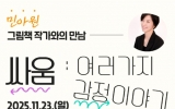 광양 박인석 기자2025. 11.07[뉴스채널]광양용강도서관은 오는 11월 23일 오후 2시, 마로극장에서 초등학교 1~3학년 어린이를 대상으로 그림책 『싸움』의 저자 민아원 작가와의 만남을 운영한다고 밝혔다. ‘싸움: 여러 가지 감정 이야기’를 주제로 한 이번 작가와의 만남은 어린이들의 감수성과 사회성을 높이고, 건강한 자아와 관계 형성에 도움을 주기 위해 마련됐다. 함께 읽을 도서 『싸움』은 뾰족뾰족한 마음이 만나 별이 되는 이야기를 담은 그림책으로, 갈등 속에서도 서로의 감정을 이해하고 함께 성장해 가는 모습을 유쾌하면서도 따뜻하게 그려냈다. 참가 인원은 ...