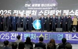 [전남=뉴스채널] newscheaner@kakao.com 전라남도가 지역 청년과 혁신기업이 함께 성장하는 창업 생태계의 새 장을 열었다. 전남도는 6일부터 7일까지 이틀간 순천만생태문화교육원 일원에서 ‘제1회 전남 벤처·스타트업 페스티벌’을 개최하고, 지역 혁신 창업의 미래를 선포했다. ■ “도전과 모험으로 전남의 혁신을 스타트하다” 이번 행사는 ‘벤처·창업의 도전과 모험, 전남이 혁신을 스타트하다’를 주제로 열렸으며, 김영록 전남도지사를 비롯해 김태균 전남도의회 의장, 이병운 순천대 총장 등 지역대학 총장과 출연...