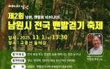 남원 박인석 기자2025. 10.30[뉴스채널]제2회 남원시 전국 맨발걷기 축제, 11월 1일 교룡산 둘레길에서 개최 남원시가 주최하고 맨발걷기국민운동본부 남원지회가 주관하는 ‘제2회 남원시 전국 맨발걷기 축제’가 오는 11월 1일 오후 1시 30분, 교룡산 둘레길 일원에서 열린다. 이번 행사는 남원시와 맨발걷기국민운동본부가 공동으로 주최하며, 전국 각지에서 참가자들이 모여 건강과 힐링, 그리고 문화를 함께 나누는 걷기 축제의 장이 될 전망이다. 참가자들은 황톳길과 소나무 숲길, 역사 탐방로를 따라 걸으며 단순한 걷기를 넘어 마음의 평안과 자연 치유의 시간을 갖...