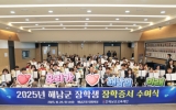 신안 박인석 기자2025. 10.30[뉴스채널]재단법인 해남군교육재단(이사장 명현관)은 지난 28일 해남군청 대회의실에서 2025년 해남군 장학생 장학증서 수여식을 가졌다. 수여식에서는 2025년 각 분야 해남군 장학생으로 선발된 우수학생 474명에게 총 4억 5,500만원의 장학금을 지원한다. 이날 수여식에는 장학생 대표 78명과 관계자들이 참석하여 자리를 빛냈다. 식전 공연으로 예체능 분야 장학생으로 선발된 한국무용창작팀과 태권도 시범팀이 수준 높은 공연을 선보이기도 했다. 2025년도 장학금 대상자는 성적우수 장학생 75명, 기능영재 장학생 30명, 희망장...