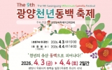 광양 박인석 기자2026. 03.30[AI 호남뉴스] 광양동백축제추진위원회는 4월 3일부터 4일까지 이틀간 옥룡면 옥룡사지 동백숲 일원에서 제9회 광양천년동백축제를 연다. 이번 축제는 천년의 역사를 간직한 옥룡사지 동백숲을 배경으로 공연과 체험, 주민 참여 행사를 마련해 봄철 지역 관광 활성화에 힘을 보탤 예정이다. 올해로 9회를 맞는 이번 축제는 ‘천년의 유산 동백으로 피어나다’를 주제로 마련됐으며, 축제는 동백숲의 자연경관과 지역 문화를 함께 즐길 수 있도록 공연, 체험, 전시, 주민 참여 프로그램 등으로 구성된다. 축제 첫날인 4월 3일에는 다례제를 시작...