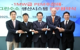 부안 박인석 기자2025. 10.29[뉴스채널]부안군은 29일 부안군청에서 전북특별자치도, 현대자동차, 현대건설, 전북테크노파크와 함께 부안군 수소도시 조성사업의 일환으로 1MW급 PEM(고분자 전해질막) 수전해 그린수소 생산시스템 구축을 위한 업무 협약(MOU)을 체결했다고 밝혔다. 이날 협약식에는 권익현 부안군수를 비롯해 배주현 전북자치도 청정에너지수소과장, 팔코 베르그 현대자동차 상무, 서유택 현대건설 상무, 이규택 전북테크노파크 원장 등 주요 관계자들이 참석했다. 이번 협약은 국내 독자 기술로 개발된 1MW급 PEM 수전해 시스템을 부안군 수소도시 조성...