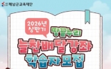 전라남도 박인석 기자2026. 01.20[AI 호남뉴스]해남군교육재단은 군민 평생학습 환경 조성을 위해 상반기 땅끝누리 늘찬배달강좌 학습자를 모집한다. 상반기 땅끝누리 늘찬배달강좌는 3월 3일부터 6월 19일까지 총 16주간 운영되며, 기간 중 총 13회 강좌로 구성된다. 운영 대상은 원칙적으로 10인 이상으로 구성된 학습팀이며, 악기를 활용한 강좌에 한해 7인 이상으로 구성된 학습팀도 신청 가능하도록 운영 기준을 적용한다. 모집 규모는 총 135팀 내외다. 특히 올해 상반기에는 기존 ‘1인 1강좌 신청’에서 동일한 학습팀원이 구성되는 조건하에 1인당 최대 2개...