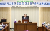 [뉴스채널]장성군의회 의원연구단체 ‘정책개발연구회’는 지난 27일 군의회 상임위원회의실에서 ‘장성군의회 자치법규 발굴 및 정비 연구용역 최종보고회’를 개최했다. 그동안 정책개발연구회는 조례 발굴 및 정비 연구용역을 통해 장성군 지역 실정에 맞는 신규 조례 제안, 정책 변화에 맞는 조례 정비 등 자치법규를 체계적으로 연구하며 입법 실효성을 높이는 연구 활동을 활발하게 추진해 왔다. 최종보고회는 5개월간 진행한 연구용역의 최종 결과물을 공유하는 자리로 연구용역을 수행한 나라살림연구소는 최종보고회를 통해 ▲지역 실정에 맞는 신규 조...
