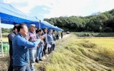 무주 박인석 기자2025. 10.15[뉴스채널]무주군이 벼 작목의 경쟁력 강화를 위해 품종 다변화를 시도하고 있는 가운데 지난 15일에는 안성면 장기리 일원에서 ‘신동진1’ 생육평가회를 가졌다. 이날 평가회는 해당 품종의 생육 상태와 병해충 저항성, 품질 등을 종합적으로 관찰하고 ‘신동진’과 ‘참동진’ 등 다른 품종과의 비교를 통해 보급 확대 방안을 모색한다는 취지에서 마련된 것으로, 황인홍 무주군수를 비롯한 6개 읍·면 이장, 그리고 지역 내 벼 재배농가 등 60여 명이 참석해 ‘신동진1’의 주요 특성과 전시포 운영 현황을 공유하고 생육 상황을 직접 점검했다...