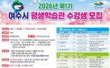여수 박인석 기자2026. 01.19[AI 호남뉴스]여수시가 시민들의 교육 기회 확대를 위하여 평생학습관에서 제1기 정규 프로그램 수강생을 오는 1월 26일부터 28일까지 3일간 모집한다. 이번 정규 프로그램은 시민들의 평생학습 기회 확대를 위해 차별성과 실용성을 모두 갖춘 과정들로 구성됐다. 특히 AI와 인문, 예술, 운동 분야를 아우르는 최신 경향 반영 과목들이 눈길을 끈다. 주요 강좌로는 ▲Suno AI 디지털 싱글 제작 ▲AI로 만드는 섬박람회 홍보영상 제작 ▲AI 시대 안목을 높이는 로컬디자인 ▲섬, 민화를 품다 등이 있으며 36개 과목으로 총 895...