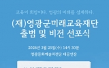영광 박인석 기자2026. 03.11[AI 호남뉴스]영광군미래교육재단은 오는 3월 25일 오후 2시 30분, 영광문화예술의전당 대공연장에서 '영광군미래교육재단 출범 및 비전선포식'을 개최한다. 이번 행사는 영광군미래교육재단의 공식 출범을 대ㆍ내외에 알리고 지역 교육 생태계 조성의 출발을 알리기 위하여 마련됐다. 재단 출범 경과보고, 재단 비전 선포, 퍼포먼스 등이 진행될 예정이며, 재단의 설립 취지와 운영 방향을 군민과 함께 공유하는 뜻깊은 자리가 될 것으로 기대된다. 영광군미래교육재단은 지역 교육의 지속가능한 발전과 교육 경쟁력 강화를 위해 대학생 등록금 지원...