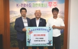 나주 박인석 기자2025. 09.25[뉴스채널]한국양봉협회 무주군지회가 지난 25일 (재)무주군교육발전장학재단에 장학금 259만 원을 기탁했다. 이날 기탁한 장학금은 제29회 무주반딧불축제에서 농특산물 판매장을 운영하면서 얻은 벌꿀 판매 수익금으로 알려져 훈훈함을 더하고 있다. 송재철 지회장은 “지역 대표 축제에서 얻은 수익금인 만큼 의미 있는 일에 쓰고 싶어 회원들이 마음을 모았다”라며 “양봉협회 회원들이 무주의 청정 환경에서 직접 채취한 고품질 벌꿀을 소개·판매하고 얻은 수익금을 지역사회에 환원한다는 점에서 큰 보람을 느낀다”라고 밝혔다. 이어 “...