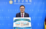 광주광역시 박인석 기자2025. 09.24[뉴스채널]김명수 광주 광산구의회 의장이 24일 ‘2025 남도국제미식산업박람회’의 성공적인 개최를 기원하는 릴레이 응원 캠페인에 동참했다. ‘2025 남도국제미식산업박람회’는 ‘자연을 맛보다, 바다를 맛보다’를 슬로건으로, 남도 미식의 가치와 산업을 연계한 국내 최초의 미식 테마 국제 행사다. 박람회는 전라남도와 목포시 주최로 오는 10월 1일부터 26일까지 목포문화예술회관 일원에서 열릴 예정이다. 이번 릴레이 캠페인은 박람회에 대한 국민적 관심을 높이고 참여를 독려하기 위한 취지로 시작됐으며, 김명수 의장은 이상주 신안군...
