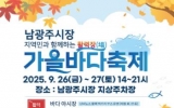 동구 박인석 기자2025. 09.24[뉴스채널]광주 동구는 오는 26~27일 이틀간 남광주시장 공영주차장 일원에서 ‘활력장! 가을 바다 축제’를 개최한다고 밝혔다. 남광주시장 문화관광형시장 육성사업 일환으로 열리게 된 이번 행사는 광주 대표 수산물시장인 남광주시장을 전국에 알림과 동시에 지역 대표 축제로 육성하기 위해 마련됐다. 26일 오후 2시부터 농악놀이, ‘수산물 가요제’ 예선전, 전어잡이 체험 등 식전 행사가 펼쳐지며, 오후 5시 개막식을 시작으로 본격적인 행사가 열린다. 오후 6시부터는 가을 별미가 가득한 ‘바다 야시장’을 운영, 시민들의 발길을 ...