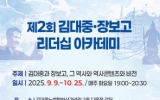 목포 박인석 기자2025. 09.08[뉴스채널](재)김대중노벨평화상기념관은 오는 9일부터 *‘김대중과 장보고, 그 역사 및 역사콘텐츠와 비전’을 주제로 '2025 김대중·장보고 리더십 아카데미'를 개최한다. 이번 아카데미는 국립목포대학교 호남문화콘텐츠연구소, 도서문화연구원, (사)장보고글로벌재단과 함께 진행하며, 전라남도와 (재)한국학호남진흥원이 후원한다. 아카데미는 김대중노벨평화상기념관 2층 다목적강당에서 9월 9일부터 매주 화요일에 열린다. 주요 강의 일정은 다음과 같다. 강의 일정은 ▲9월 9일 강봉룡 목포대 교수의 장보고는 문무대왕 해양설계의 실현자...