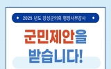 완주 박인석 기자2025. 08.29[뉴스채널]장성군의회는 오는 9월 2일부터 10월 2일까지 30일간 ‘2025년도 행정사무감사 군민제안 창구’를 운영한다고 밝혔다. 제안 대상은 ▲군 주요 시책과 사업의 개선·건의사항 ▲위법·부당한 행정 사례 등이다. 단, 개인 사생활 침해, 단순 숙원사업, 재판·수사 중인 사건, 명예훼손 우려가 있는 사항, 익명 제안 등은 제외된다. 이번에 접수된 내용은 장성군의회 행정사무감사 대상에 반영하거나 참고자료로 활용될 예정이며, 군민제안은 방문접수 또는 전화, 팩스 및 우편이나 장성군의회 누리집을 통해 가능하다. 심민섭 의장은“군...