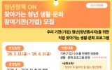 완도 박인석 기자2026. 03.20[AI 호남뉴스] 군산시는 청년의 일·생활 균형을 지원하고 현장 중심의 정책 체감을 높이기 위해 ‘청년정책 ON: 찾아가는 청년 생활·문화’ 프로그램에 참여할 기관(기업)을 4월 3일까지 모집 중이라고 밝혔다. 이번 사업은 바쁜 일정 등으로 청년센터 방문이 어려운 청년들을 위해 전문가가 직접 기관과 기업, 학교 등 현장을 찾아가 맞춤형 교육과 청년정책을 안내하는 프로그램이다. 모집 대상은 군산시 관내 기관(기업), 고등학교, 대학교 등이며, 소속 청년(재직자 및 재학생) 10명 이상 참여가 가능하고 프로그램 운영 장소를 제공할 ...