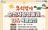 광주광역시 박인석 기자2025. 08.29[뉴스채널]순천시는 추석명절을 맞아 9월 한 달간 순천사랑상품권 13% 특별할인 판매를 실시한다고 밝혔다. 이번 할인판매는 명절 비용 부담을 줄여 서민 가계에 실질적인 도움을 주고 지역 소상공인 및 골목상권의 소비를 촉진하기 위해 추진된다. 특히 민생회복 소비쿠폰과 함께 지역경제 활성화를 위한 마중물 역할을 할 것으로 기대된다. 순천사랑상품권은 지류형과 모바일형(카드·QR)으로 발행되며, 지류형은 농협은행, 순천농협, 축협, 원협, 낙협 등 관내 5개 은행의 47개 지점에서 구매할 수 있다. 모바일형은 ‘지역상품권 cha...