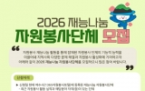 여수 박인석 기자2026. 01.12[AI 호남뉴스]여수시는 오늘(12일)부터 오는 2월 25일까지 ‘2026년 찾아가는 재능나눔 프로그램’에 참여할 자원봉사 단체를 모집한다. 해당 프로그램은 민간단체의 재능기부 활동으로 지역사회의 다양한 문제를 해결하고, 2026 여수세계섬박람회 개최 전 자원봉사자의 관심 유도 및 활성화를 위해 매년 추진되고 있다. 모집 대상은 ▲주거환경개선 ▲의료‧보건 ▲이‧미용 ▲음식 나눔 ▲박람회 홍보 등 5개 분야로 재능이 있고 6개월 이상 활동이 가능한 봉사단체다. 참여를 희망하는 단체는 시 누리집 공지사항을 참고하여 신청서 작성 후...