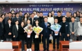 광주광역시 박인석 기자2025. 12.29[AI 호남뉴스]전북특별자치도의회는 29일 의원총회의실에서 문승우 의장을 비롯한 사무처 직원들이 참석한 가운데 ‘2025년 하반기 이임식’을 가졌다. 문 의장은 이날 퇴임하는 곽효승 사무처장과 이리나 농업복지환경전문위원, 박선주 교육전문위원 교육팀장, 양지숙 입법정책담당 주무관 등 4명에게 공로패를 수여했다. 사무처 직원들도 오랜 세월 전북특별자치도의회를 위해 묵묵히 헌신해 온 선배 공무원들의 발자취를 되새기며, 함께했던 시간과 추억을 공유했다. 특히 공직자로서 보여준 책임과 열정에 깊은 감사와 존경의 마음을 전하는 한편, 아쉬...