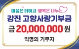 [AI 호남뉴스]강진군이 2023년 고향사랑기부제도 시행 이래 첫 2천만 원 기탁자가 탄생했다고 밝혔다. 연간 기부 한도가 2천만원으로 상향된 올해 첫 최고액 기부자가 탄생했다. 해당 익명의 기부자는 강진군과 군민을 위해 기부금을 잘 써달라며 그 이상의 내용 언급을 정중하게 거절해 잔잔한 울림을 더했다. 강진군 관계자는 “강진을 사랑하는 기부자님의 감동적인 실천에 대단히 감사드린다”라며 “2026년에도 기부자의 자긍심이 될 수 있도록 ‘강진품애 기댄 일상동행 서비스’를 비롯한 기금사업을 성실히 추진하고, 품질 좋은 강진 답례...