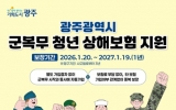 광주광역시 박인석 기자2026. 02.18[AI 호남뉴스]광주광역시는 지난해에 이어 올해에도 광주 청년들이 국방의무에 전념할 수 있도록 ‘군복무 청년 상해보험 가입’을 지원한다. 지원 대상은 광주광역시에 주민등록을 둔 군복무 청년으로, 병역법에 따른 현역병, 상근예비역, 의무경찰, 의무소방원이다. 다만 보험 제도가 이미 마련된 직업군인, 사회복무요원 등은 대상에서 제외된다. 현역 군복무 청년이면 별도 신청 절차 없이 군복무 시작과 동시에 자동 가입되며, 전역이나 다른 지역으로 전출하면 해지된다. 주요 보장 항목은 ▲상해·질병 사망 및 후유장해(3000만원) ▲상해·질...