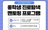 군산 박인석 기자2025. 12.17[AI 호남뉴스]군산교육발전진흥재단이 겨울방학을 맞아 ‘중학생 진로탐색 멘토링 프로그램’ 참여자를 모집한다. 이번 프로그램은 중학생들에게 진로 탐색의 기회를 제공하고 자기주도적 학습 의욕을 높이기 위해 마련됐다. 진행은 2026년 1월 26일부터 30일까지 군산대학교 인문대학 강의실에서 진행되며, 총 130명의 중학생이 참여할 예정이다. 특히 효율적인 운영을 위해 2개 기수(1기 : 2026년 1월 26일 ~ 28일 / 2기 : 2026년 1월 28일~30일)로 나누어 진행한다. 주요 프로그램은 인공지능(AI) 기반 진로·...