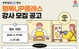 부안 박인석 기자2026. 02.11[AI 호남뉴스]부안군은 청년의 자기 계발과 사회 참여 확대를 위해 2026년 부안청년UP센터 ‘행복UP클래스’의 분야별 전문 강사를 모집한다고 밝혔다. 이번 행복UP클래스는 청년의 실제 수요를 반영한 실습 중심 교육 프로그램으로 디지털IT, 수공예, 조리·제과제빵 등 다양한 분야의 강의를 통해 청년들의 역량 강화와 일상 밀착형 배움의 기회를 제공하고자 마련됐다. 모집 대상은 청년을 대상으로 교육 프로그램 기획 및 강의 운영이 가능한 분야별 전문가로 강의 주제는 디지털IT·콘텐츠 분야, 공예·핸드메이드 분야, 요리·베이킹 분야 ...