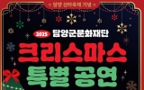 광주광역시 박인석 기자2025. 12.16[AI 호남뉴스] 담양군문화재단은 연말연시를 맞아 ‘제7회 담양산타축제’와 연계한 ‘2025 크리스마스 특별 공연’을 12월 24일부터 25일까지 이틀간 담양읍 중앙공원 일원에서 개최한다. 이번 공연은 군민과 관광객에게 문화 향유 기회를 제공하고, 거리 공연을 통해 원도심 유동 인구를 늘려 지역 상권 활성화로 이어가기 위해 마련됐다. 공연은 매일 오후 2시부터 5시까지 진행된다. 행사 첫날인 24일에는 정용주, 공성길, 주현 등 포크 가수들이 무대에 오르며, 전남도립대 버스킹팀과 여신콜라보예술단이 함께 참여해 크리...