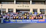 화순 박인석 기자2025. 12.15[AI 호남뉴스]여수MBC 순천이전을 저지하기 위한 여수시민들의 외침이 도심 한가운데 울려 퍼졌다. 15일 여수시에 따르면, 이날 오후 3시 여수시와 여수시의회, 시민사회단체로 구성된 ‘여수MBC 순천이전 반대 범시민대책위원회’는 시의회 청사 1층 공감뜨락에서 ‘여수MBC 지키기! 대시민 토론회 및 결의대회’를 가졌다. 이날 대회는 범대위 공동위원장인 여수시장과 시의장, 범대위 회원을 비롯해 시민과 시의원 등 3백여 명이 참석한 가운데, 1부 대시민토론회와 2부 결의대회 순으로 진행됐다. 이들은 결의문에서 “시민 의견을 배제하...