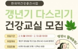 나주 박인석 기자2026. 02.06[AI 호남뉴스]전남 나주시보건소가 갱년기 증상을 겪고 있는 중장년의 건강 증진을 위해 ‘2026년 상반기 갱년기 다스리기 건강교실’ 참여자를 모집한다. 이번 건강 교실은 갱년기로 인한 신체·정신적 변화를 건강하게 관리할 수 있도록 한의약 기반 건강교육과 다양한 체험형 프로그램을 제공하는 것이 특징이다. 모집 대상은 갱년기 증상을 겪고 있는 40~64세 중장년 60명으로 운영 장소별로 각 30명씩 선착순 모집한다. 참여 신청은 오는 9일부터 13일까지 5일간 진행되며 QR코드 또는 URL을 통한 온라인 접수만 가능하다. 프로...