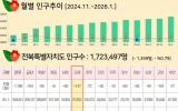 정읍 박인석 기자2026. 02.05[AI 호남뉴스]김제시가 2026년 새해 시작과 함께 세 자릿수 인구 증가를 기록하며, 지난해의 가파른 상승세를 이어가고 있다. 행정안전부 주민등록 인구통계에 따르면 2026년 1월 말 기준 김제시의 주민등록인구는 81,823명으로 전월 대비 147명이 증가했다. 이는 자연감소(74명)를 상쇄하는 활발한 인구 유입의 결과로, 1월 한 달간 총 221명의 사회적 순유입이 발생하며 시가 추진해 온 다양한 인구 유입 정책이 실질적인 성과로 이어지고 있음을 보여준다. 특히 이번 인구 증가는 영유아(0~6세)가 23명, 청년층(18~...