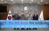 전라남도 박인석 기자2026. 01.30[AI 호남뉴스]담양군·함평군·영광군·장성군 등 전남 4개 군의회 의장단은 30일 영광군의회에서 광주–전남 행정통합을 염원하는 공동 퍼포먼스에 참여했다. 이번 퍼포먼스는 행정구역의 경계를 넘어 광주와 전남이 하나의 생활권이자 경제권으로 도약하기 위한 의지와 공감대를 확인하기 위해 마련됐다. 특히 지역 간 협력과 상생 발전의 필요성에 대해 지방의회 차원에서 뜻을 모았다는 점에서 의미를 더했다. 의장단은 “행정통합은 지역의 미래 경쟁력 확보와 균형발전을 위해 더 이상 미룰 수 없는 과제”라며 “지금이야말로 광주와 전남의 미래를 결정...